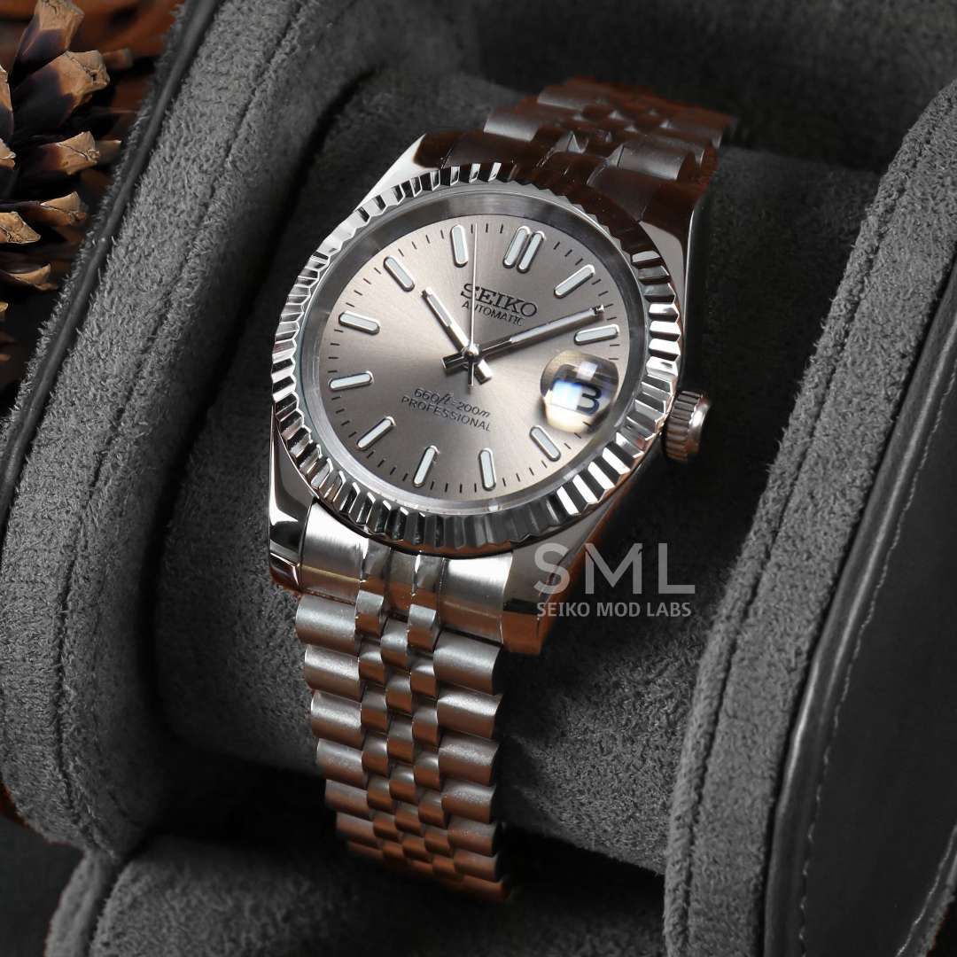 A Seiko Mod is a custom watch, hand-assembled using a prestigious Seiko automatic or hybrid movement and paired with high-quality aftermarket parts, often crafted from 316L stainless steel.